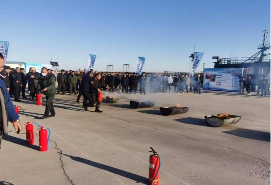 近日,丹东市振兴区在王华码头成功举办了一场渔船渔港消防应急演练。此次活动由区农业农村局组织,旨在切实提高渔业安全生产水平,增强渔民自救互救能力,全面保障渔民群众生命财产安全。演练共吸引相关单位及渔民代表100余人参与。