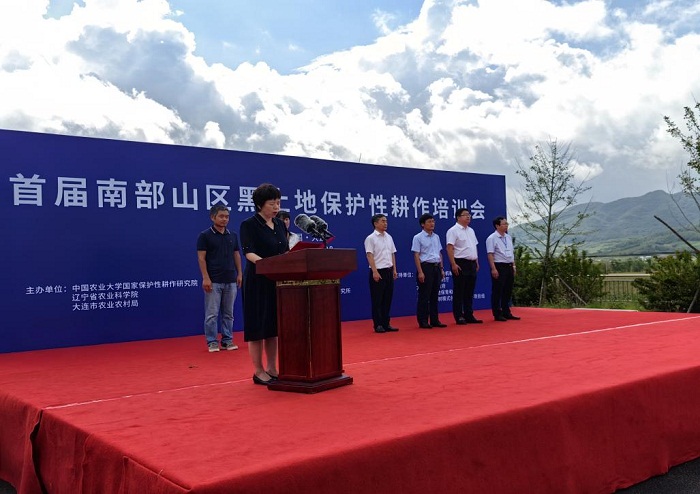 为进一步落实《辽宁省农业农村厅 辽宁省财政厅关于印发辽宁省2023年黑土地保护性耕作实施方案》,大连市农业农村局会同中国农业大学国家保护性耕作研究院、省农业科学院于7月27-28日在庄河市举办首届辽宁省南部丘陵山区保护性耕作技术培训暨现场观摩会,辽宁省农业农村厅副厅长杜鑫、市农业农村局局长邢芳及来自全省从事保护性耕作的专家、管理、推广、科研、教学约140余人参加活动。杜鑫副厅长、邢芳局长分别在培训会的开幕式上致辞。